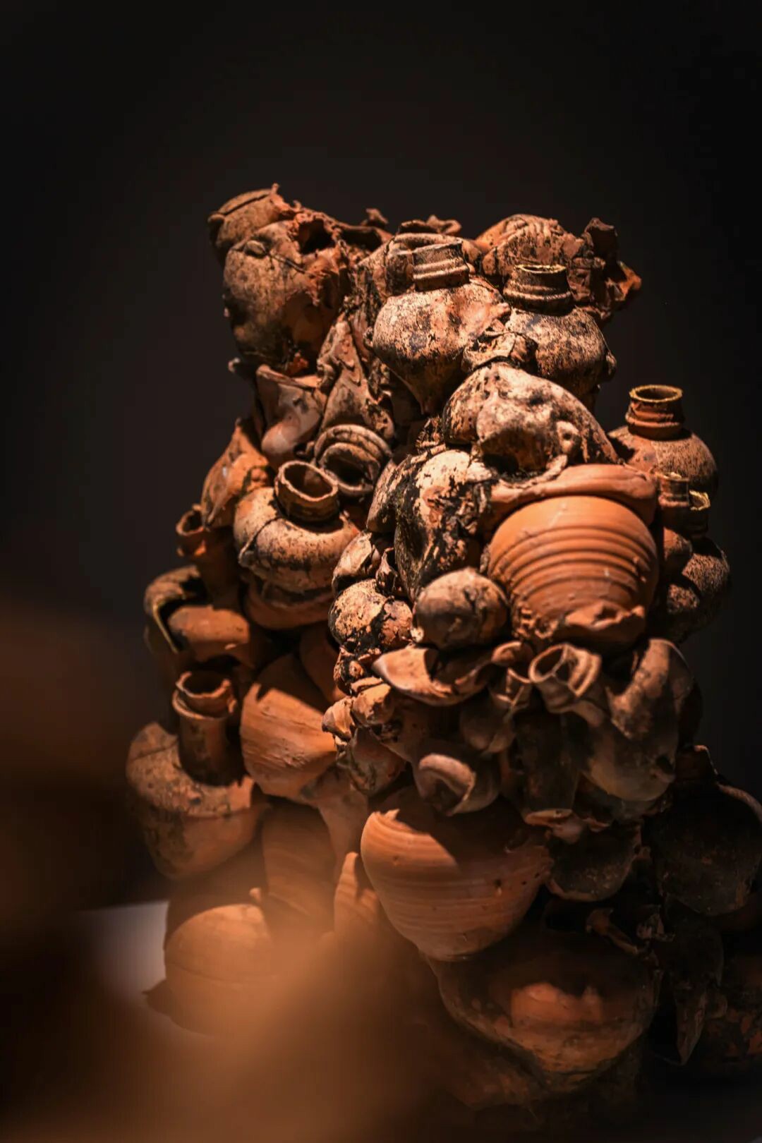 更重要的是,古老的陶土经过重新聚集,被赋予了新的生命。它们不再只是历史遗留的产物,而是连接古今的纽带——让五千年前的文明,在今天的展厅中重新“开口说话”。这不单单是一种艺术手法,更传递了对文明传承的理解:文化的生命力正来自于无数个体的汇聚与传承。