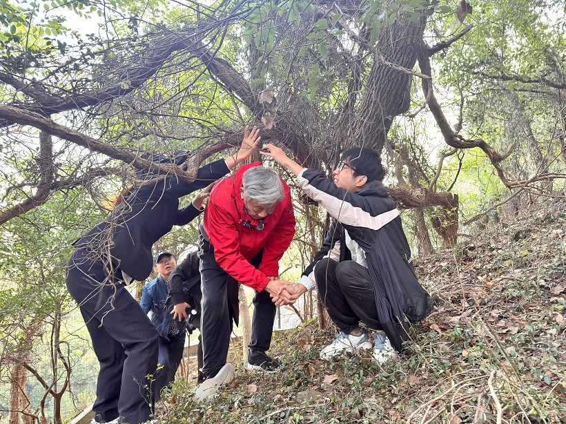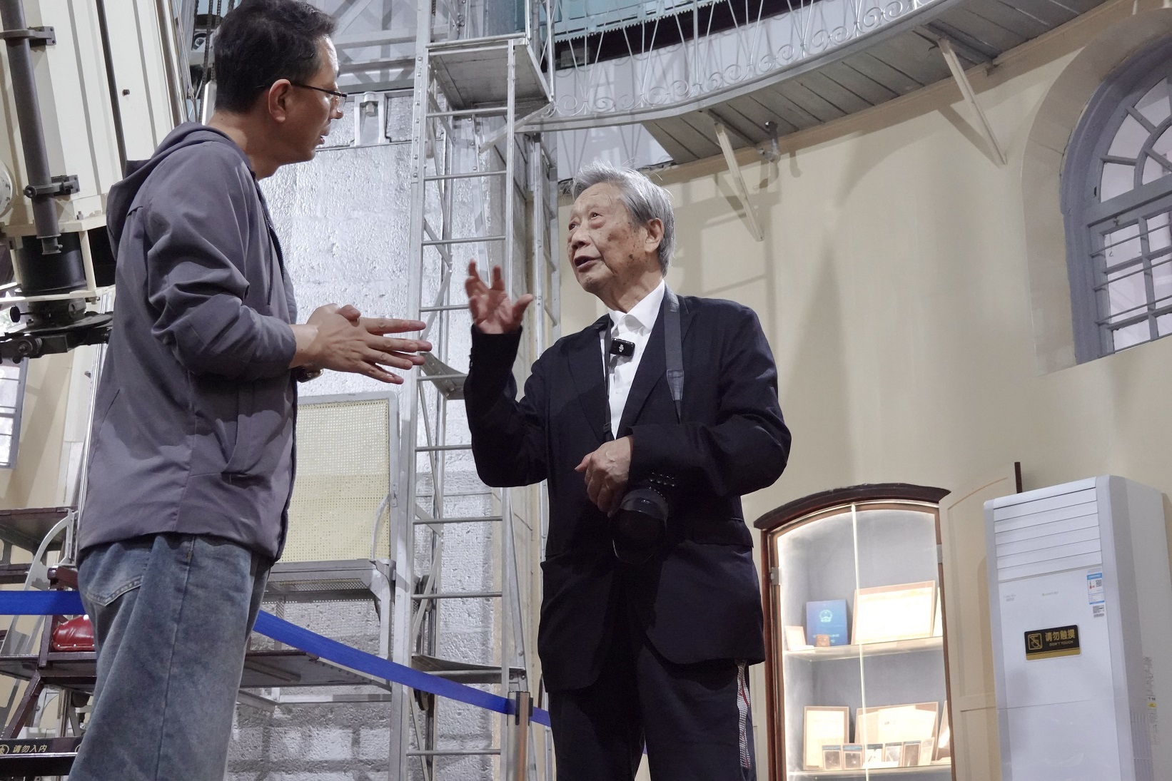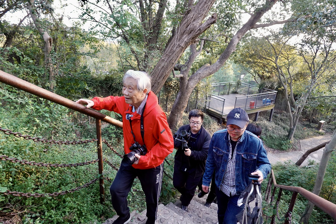 国庆节之后,我和陈老约定见面,主要是跟他沟通一下即将开始的“美丽家园”系列创作在松江的采风写生行程。刚出电梯口,就看见他在走廊上等我,他把手一挥,甚至连带整个手臂都扬起来,高高举过头顶(在之后的采风之行中,我愈发熟悉他这个动作,那是一种格外亲切又豪爽的招呼方式。虽然已是耄耋之年,但他的身体还是让很多“脆皮年轻人”也羡慕不已)。见面的那天,他已经换上了一身运动装,走路大步流星(毫不夸张),仿佛马上要奔向户外采风,像极了即将走上起跑线的奥运选手。所以我这篇文章标题中的“跟随陈家泠”绝非比喻修辞,在其后的采风途中,他确实常常成了队伍之中走在最前面的人。