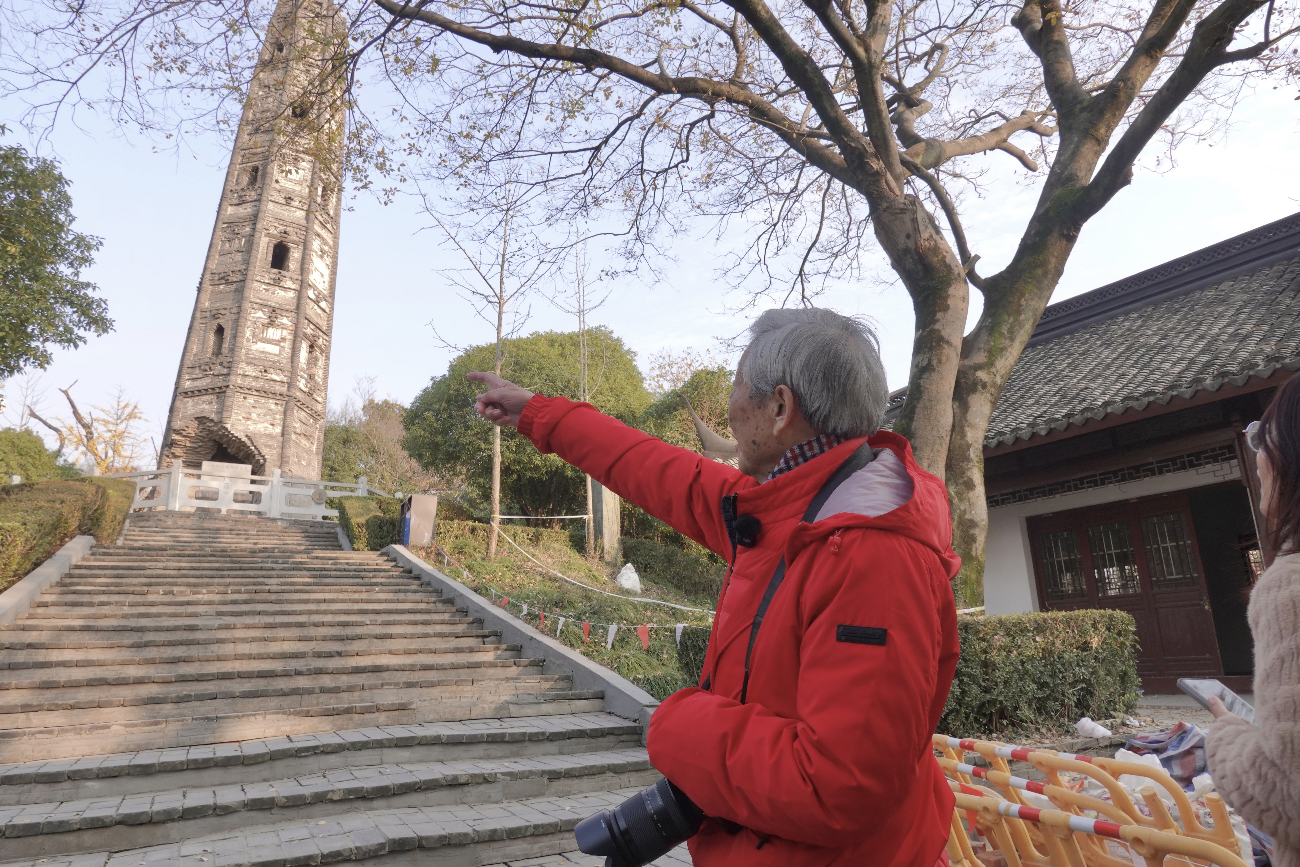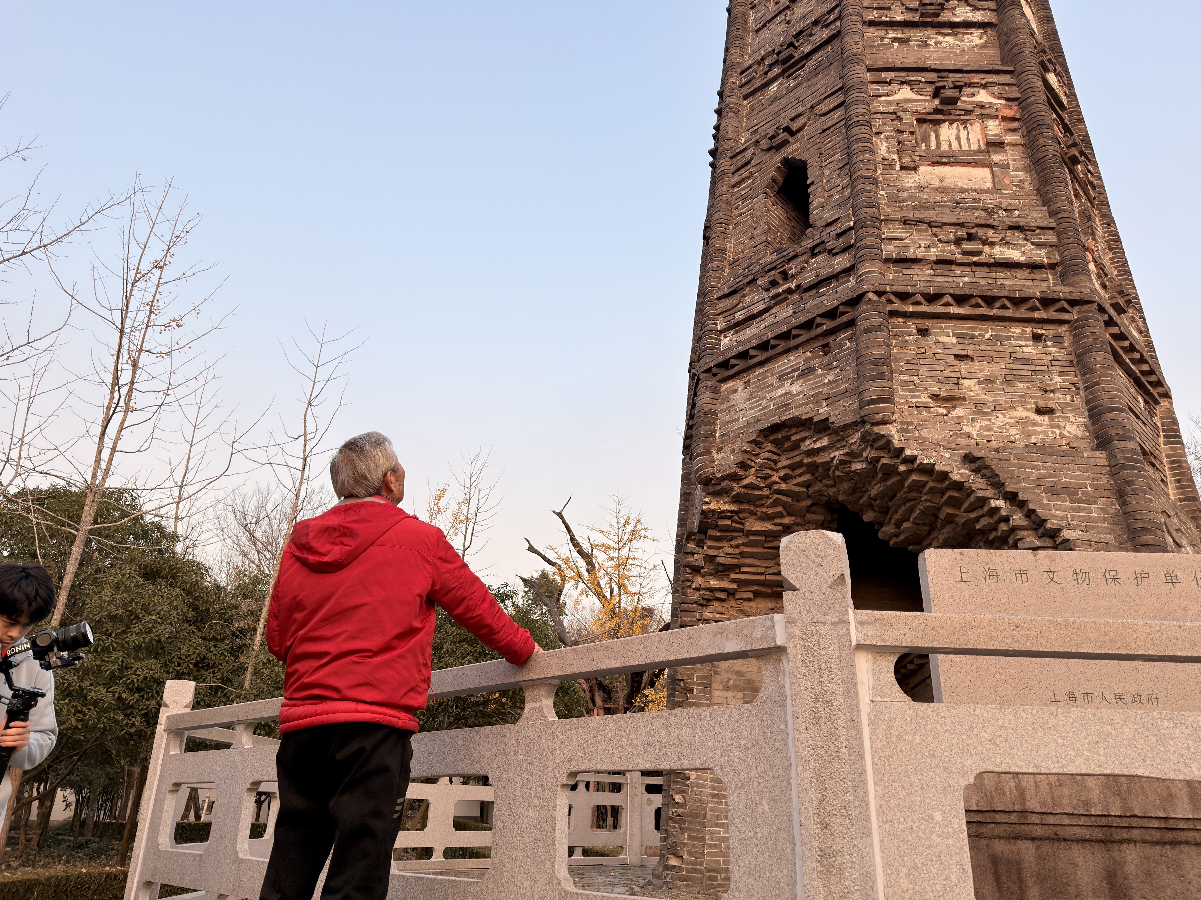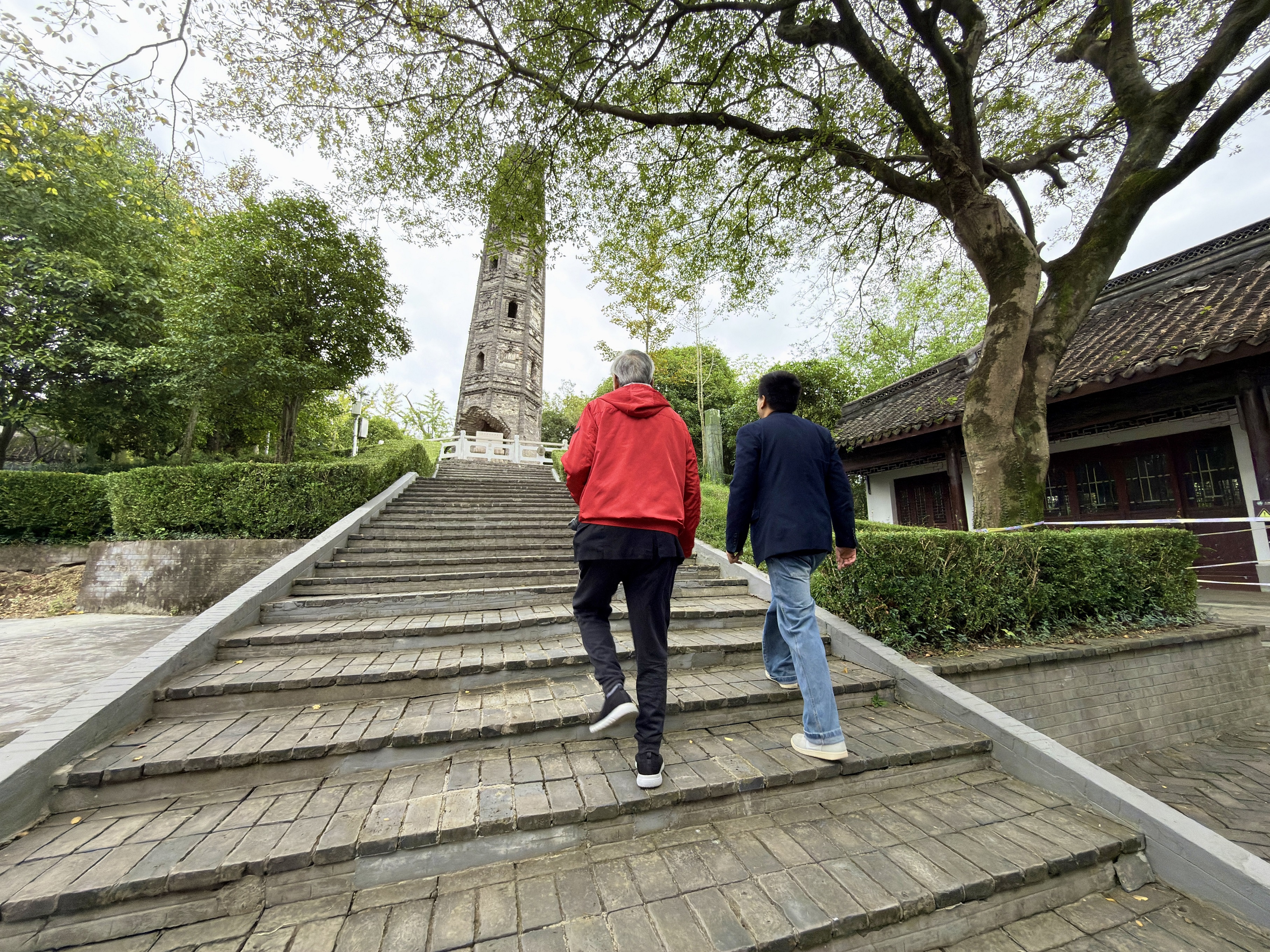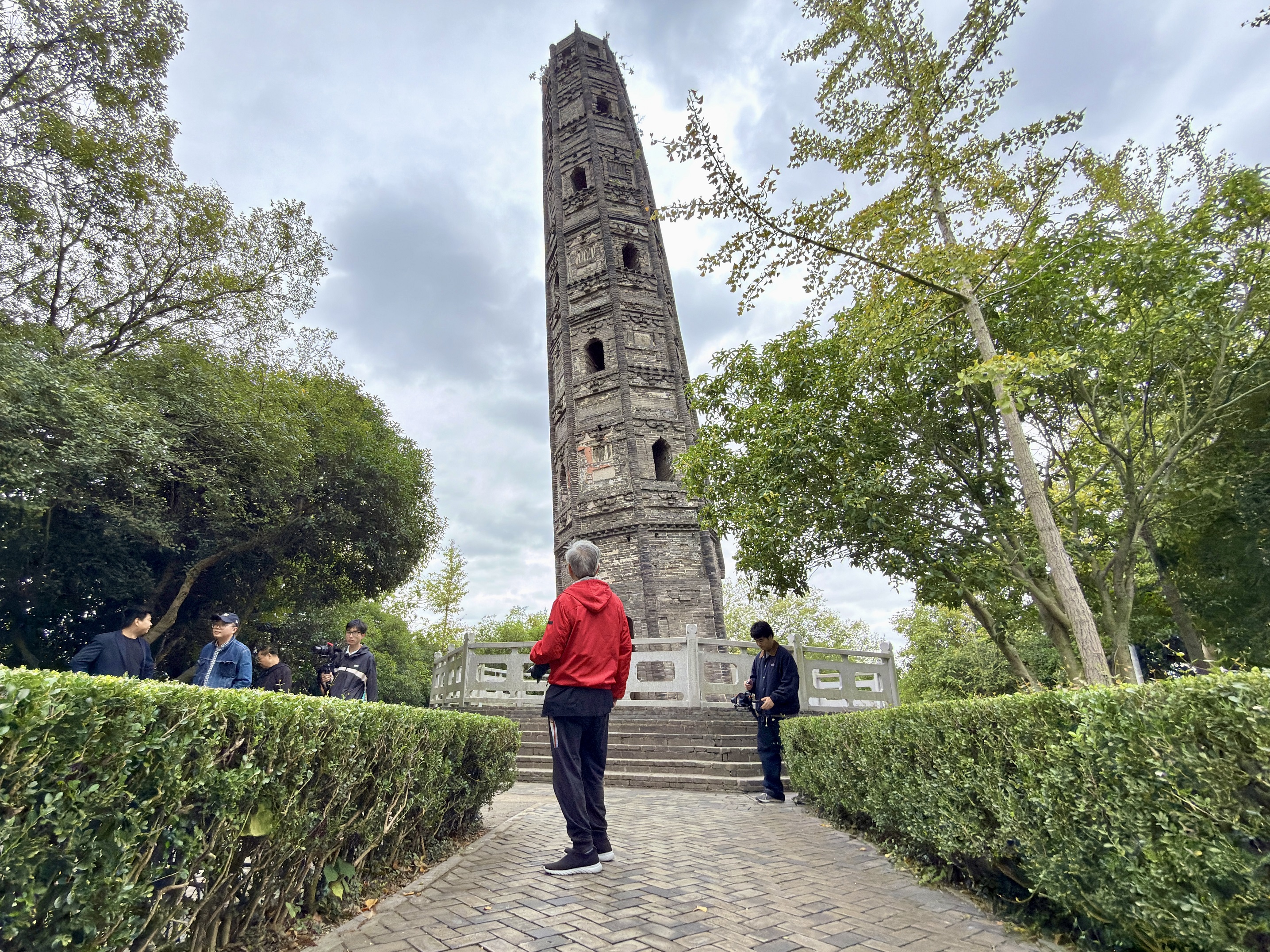 我跟陈老介绍,天马山上的护珠宝塔应该是世界上倾斜角度最大的佛塔(7.1度),比举世闻名的意大利比萨斜塔倾斜角还大(5.3度),他说那我们要去看看。