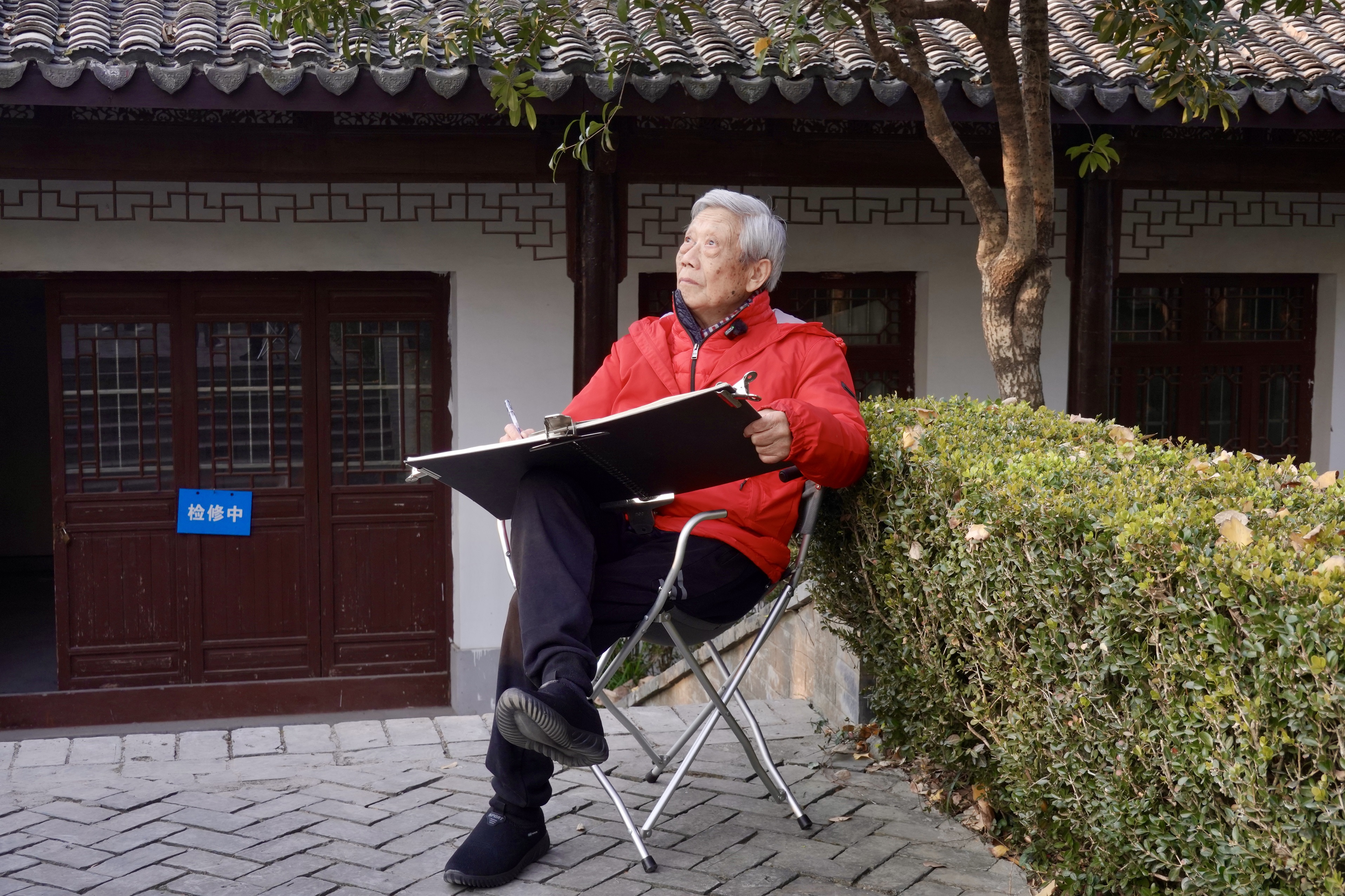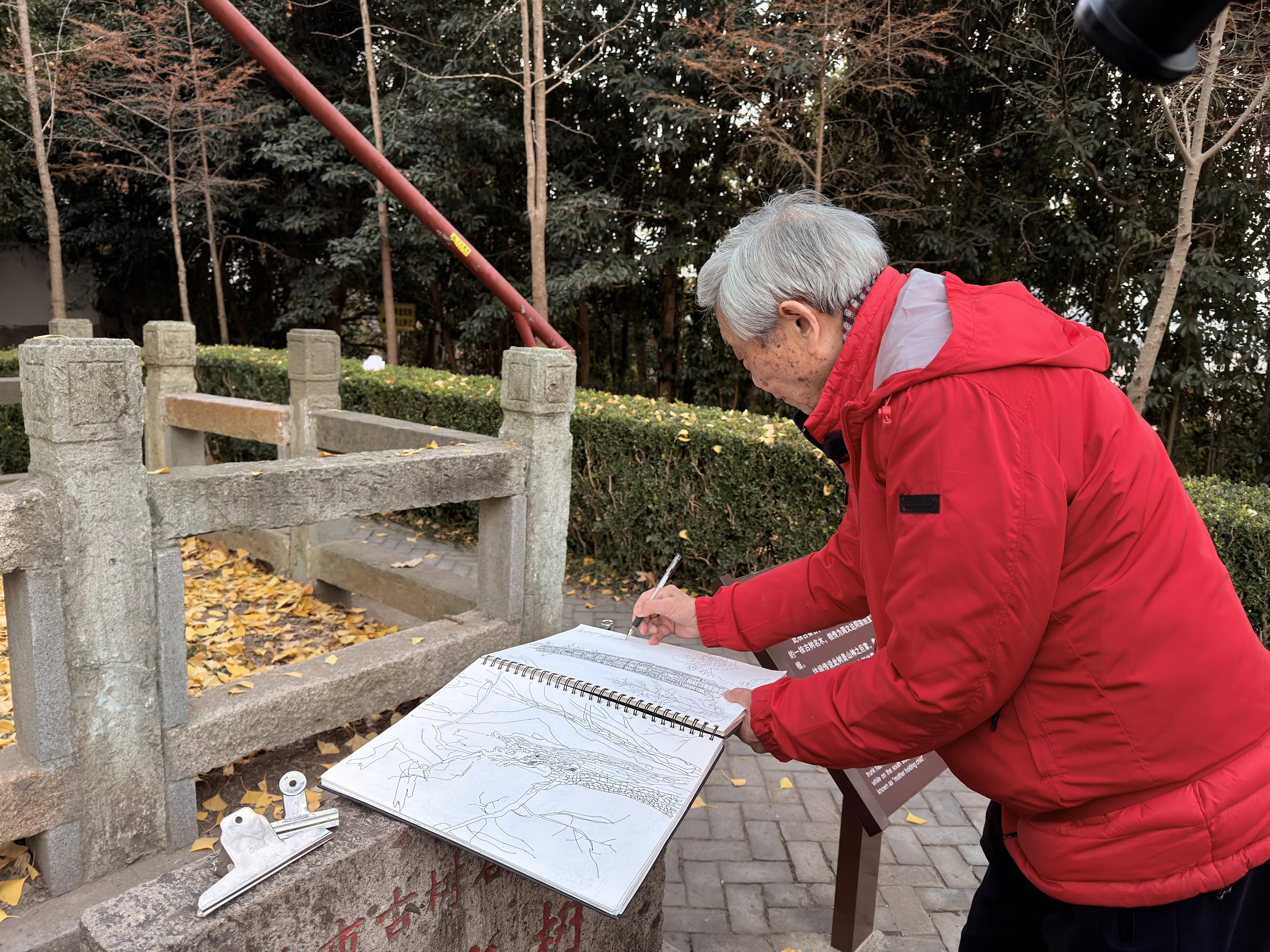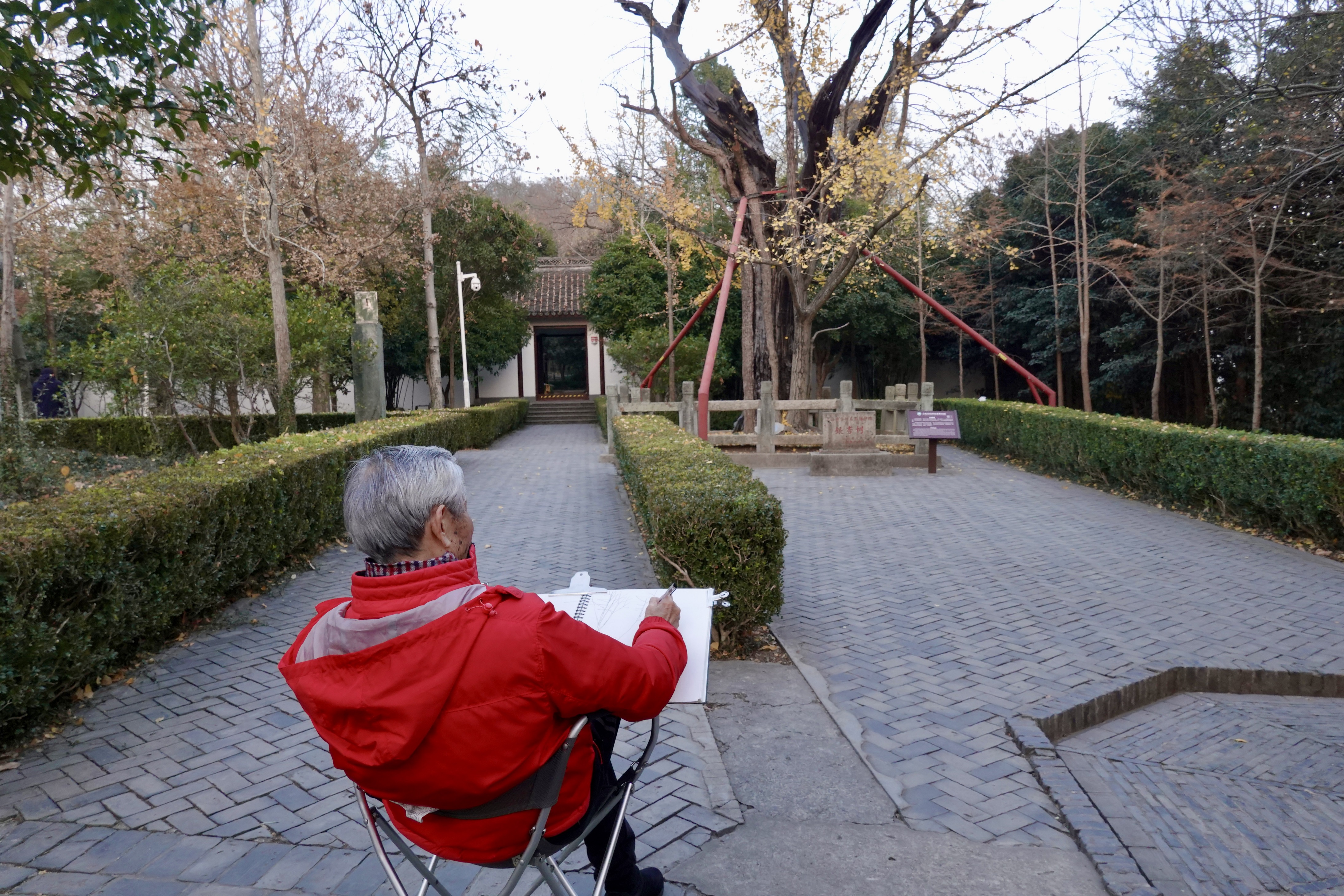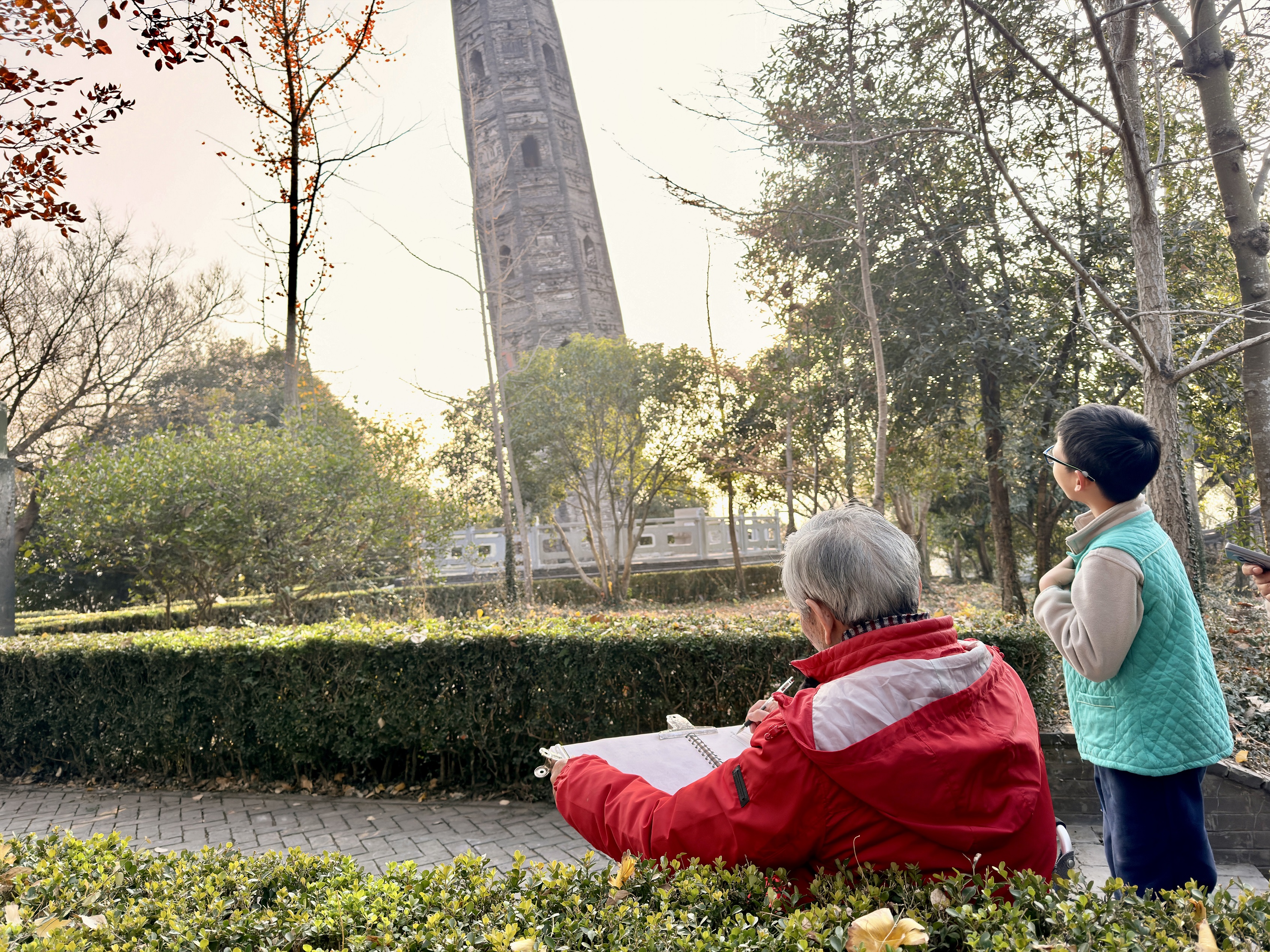 第一次爬上天马山,他绕着护珠塔转了几圈,回过头来,指着塔周围的一圈银杏树说,等叶子黄了,我们再来画。