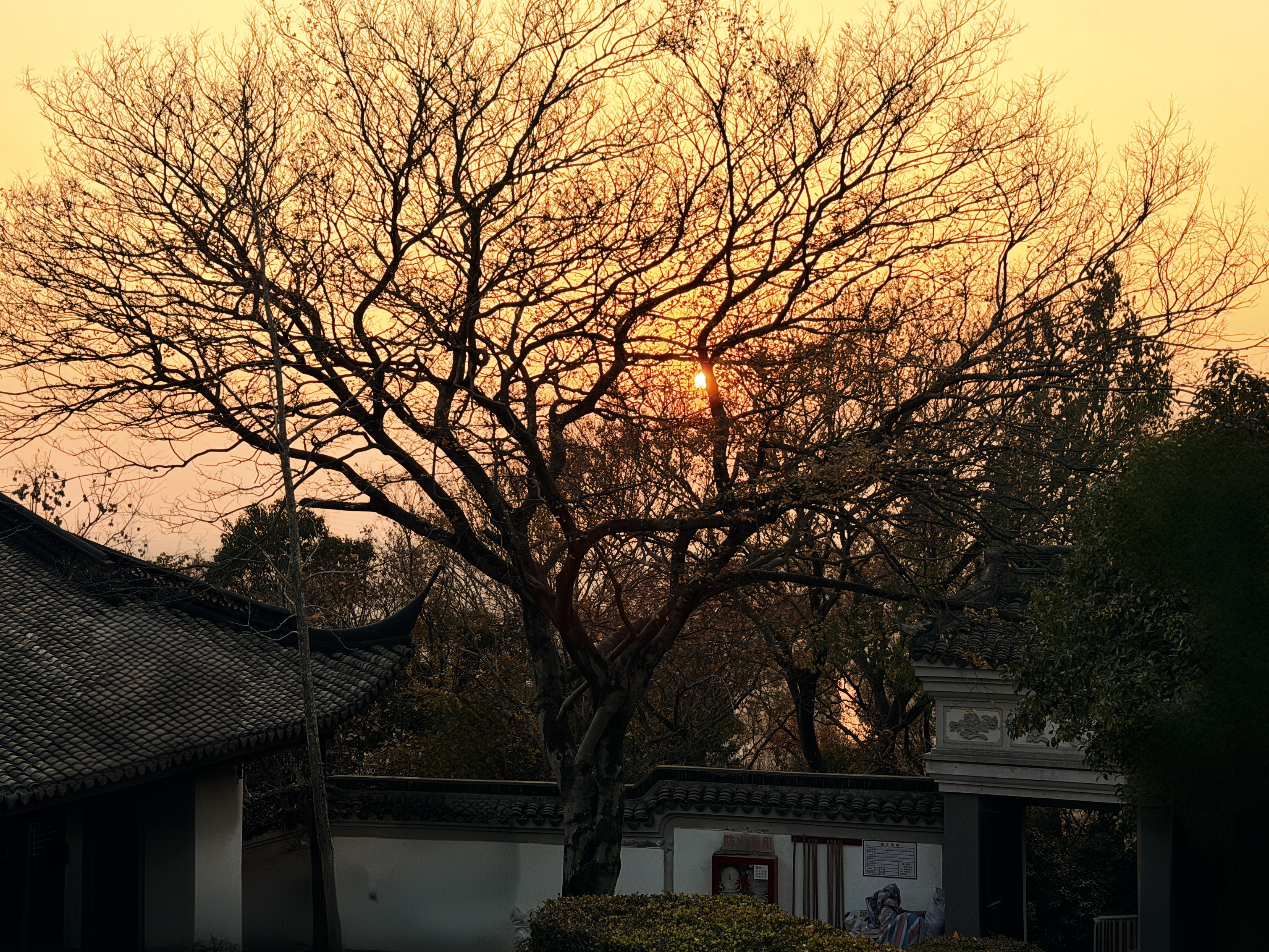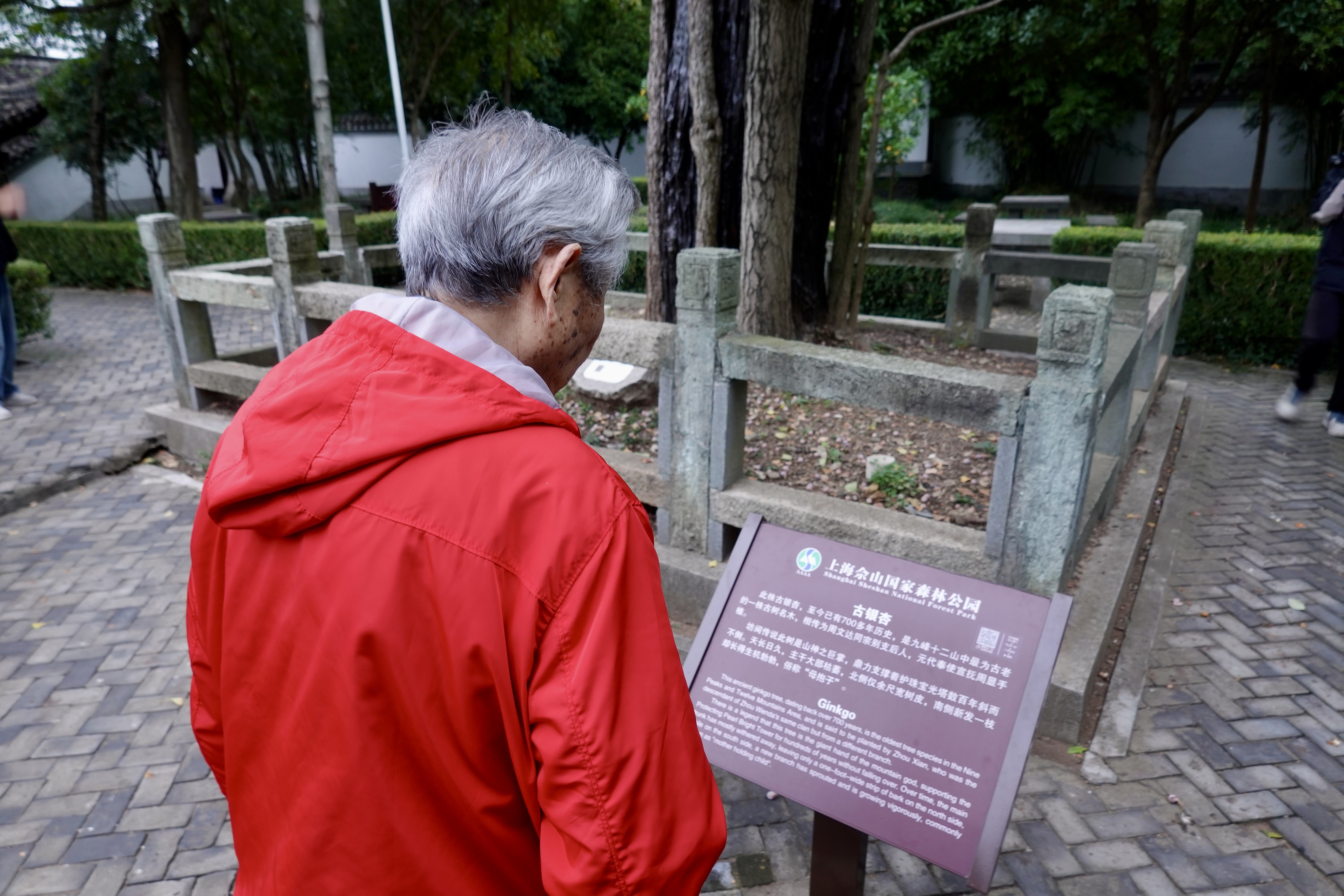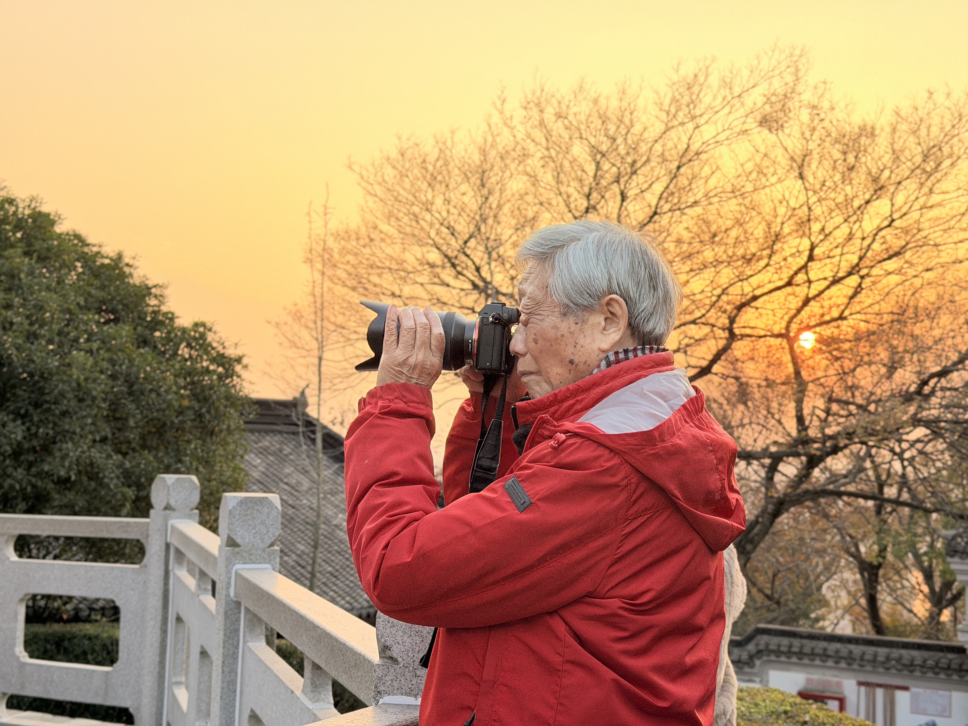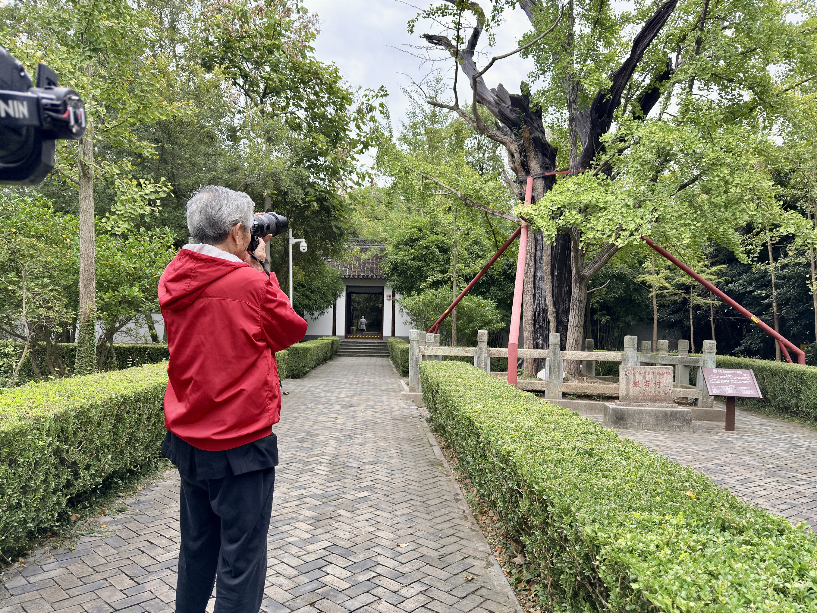 开头写道:天马山上有一塔、一树。据说这塔的“斜而不倒”,冥冥当中是有这株700多岁的古银杏树“撑”着,只见树枝呈扑抱之势,如一只巨灵神掌,真就护着这座千年古塔。一塔一树,在漫长的岁月中对望,不知谁护佑着谁。对着这棵古银杏树,陈老又是一番咔嚓咔嚓。