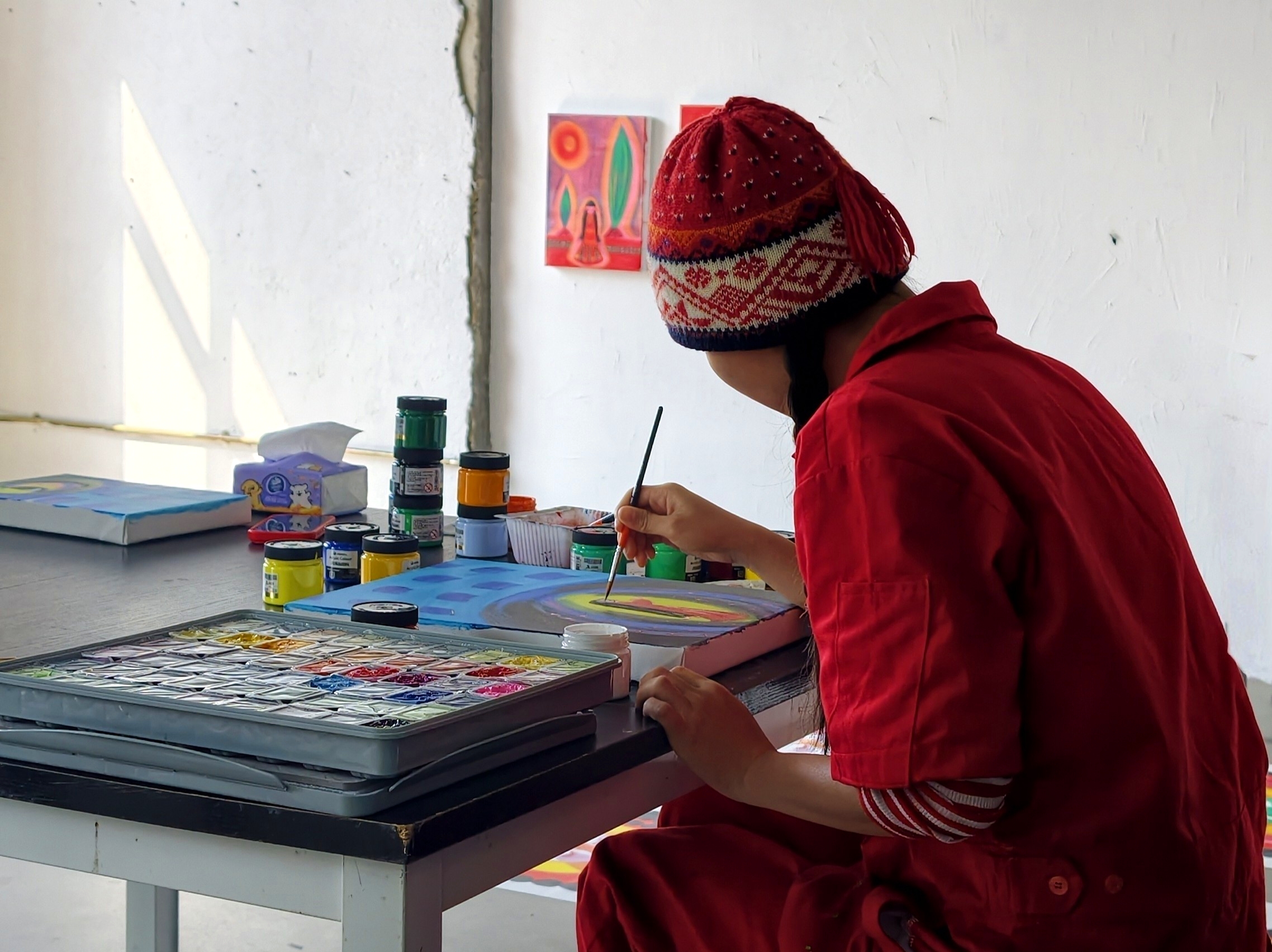 静谧的工作室内,绚丽的笔触已爬上画布,灵感正悄悄发芽。